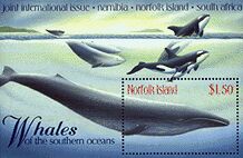 19. What species of whale is pictured to the left of the orcas in this picture?