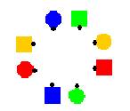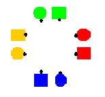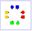 When drawing square dance figures, it is traditional to specify men as squares and women as circles, with small protuberances denoting the front of the body. When the Unnamed Facility club draws square dancing figures, couple 1 is blue, couple 2 is red, couple 3 is green and couple 4 is yellow.