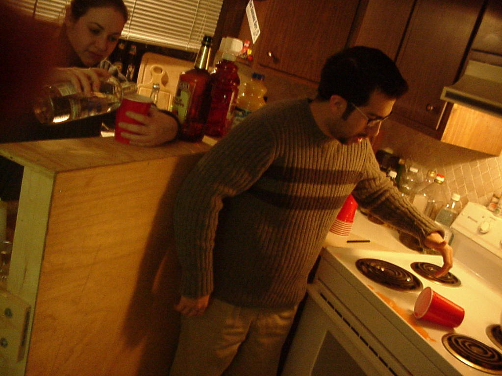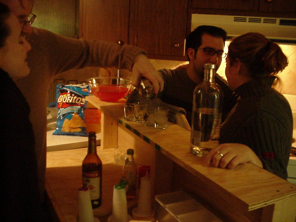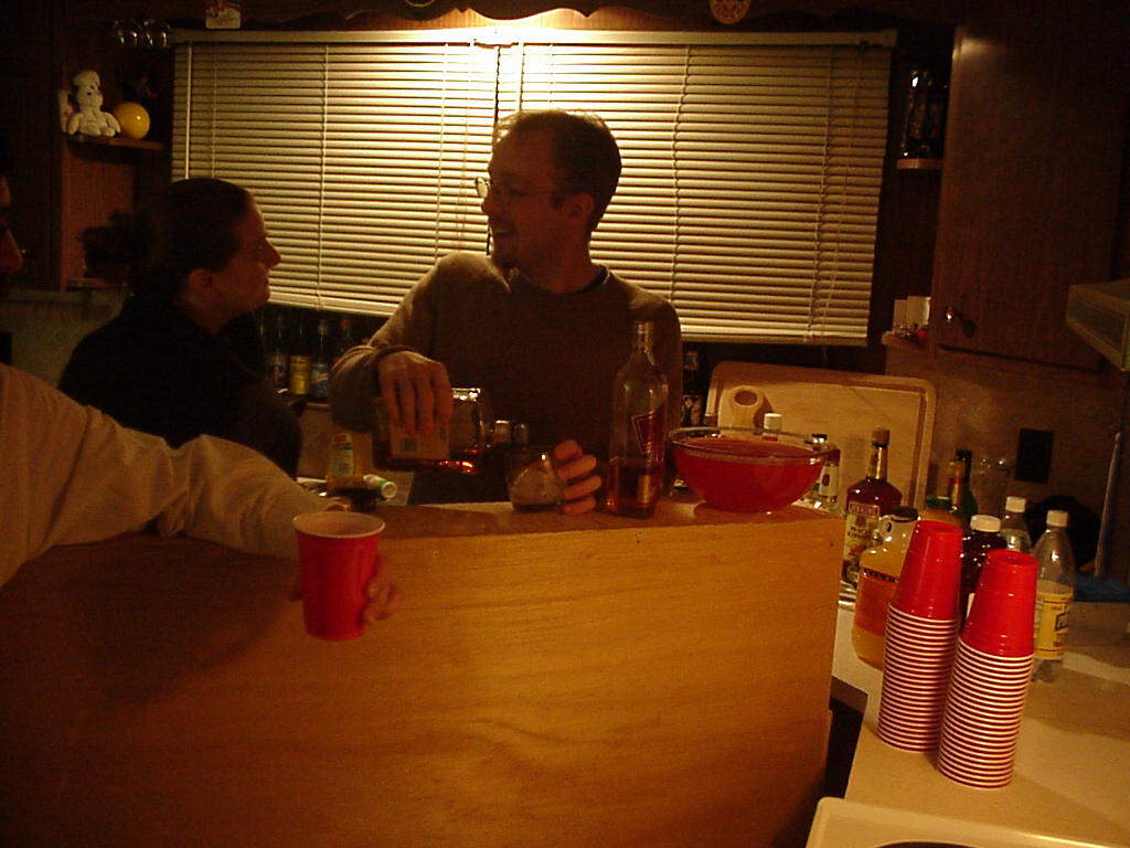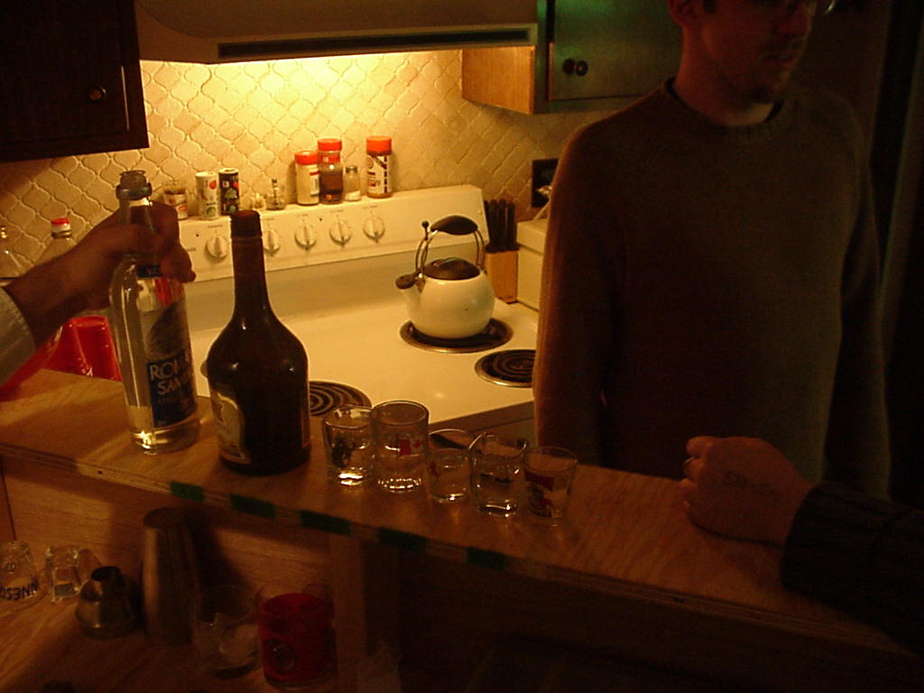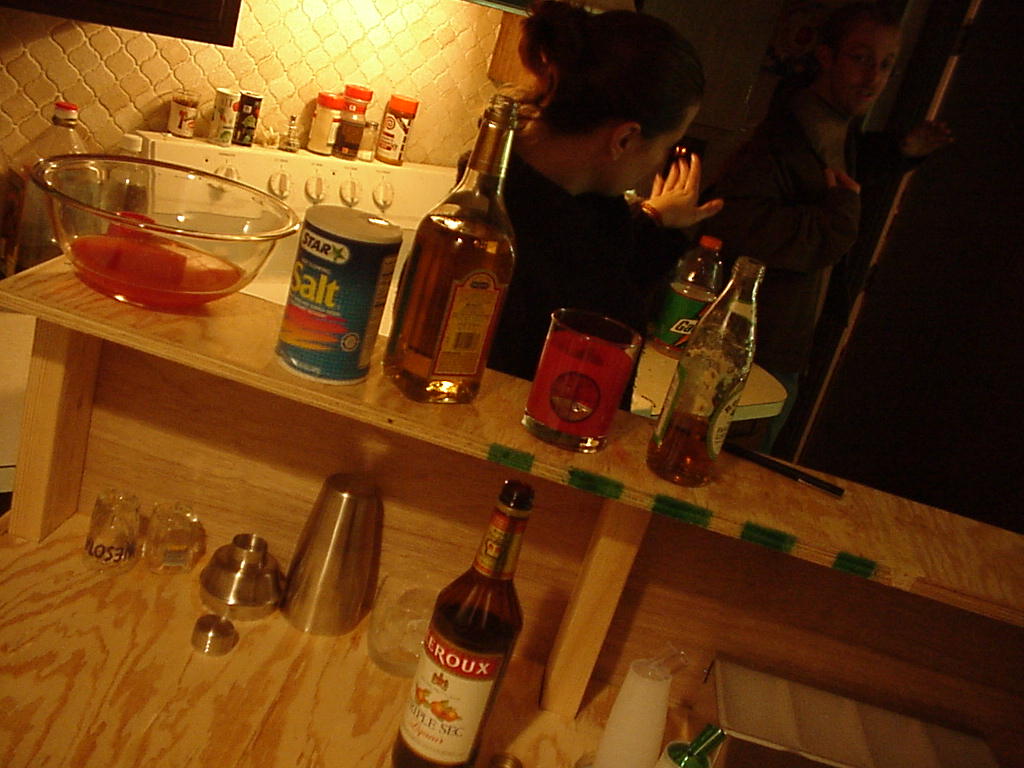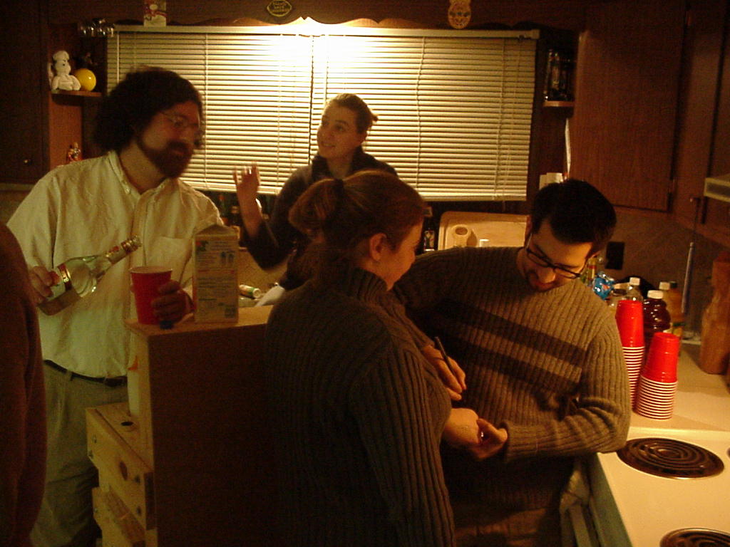 In a room of bare workspaces, one cubicle has a bunch of photos spread across the desk. Apparently at least one person who worked in this complex had a social life (if not a lot of photographic ability).