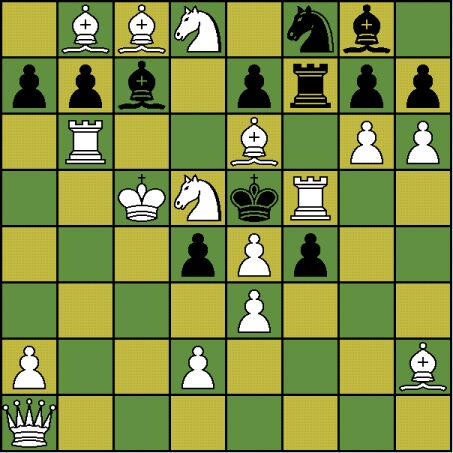 Most of the players walk off and disappear from the hologram, but one of the last nine stops the other eight and says, "Perhaps we should say something about those last nine moves." Each of them in turn faces whatever camera took this image, thus facing you, and makes a statement about the last nine moves. Then they leave, and the camera zooms in on the board, which comes into sharp focus in the position given below.
